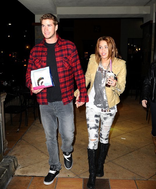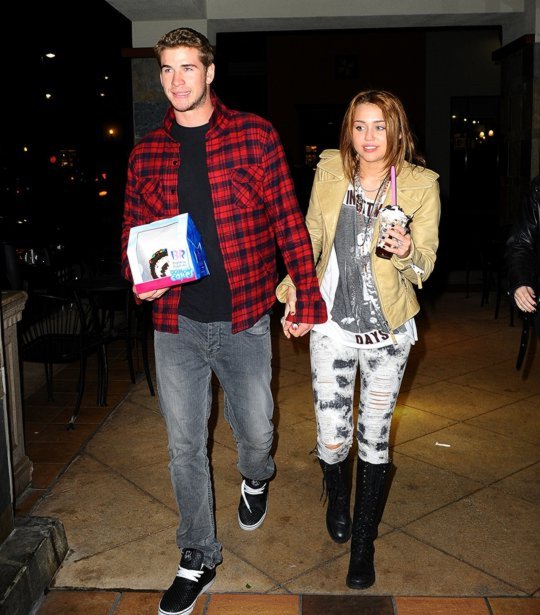 Aparentemente estas son fotos cándidas de Miley Cyrus y su enamorado Liam Hemsworth disfrutando de un aperitivo en el Katsuya, Hollywood, hoy miércoles 3 de marzo de 2010.