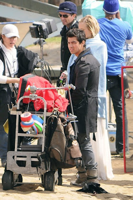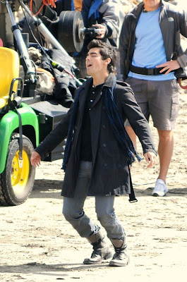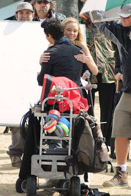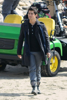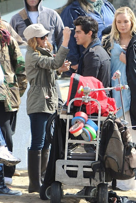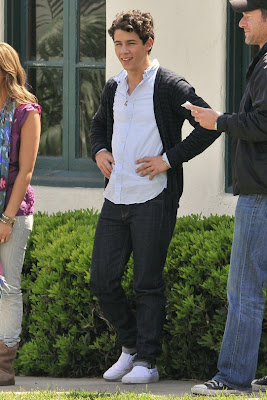 Mientras que Joe Jonas se pone dramático en el set, su hermano Nick fue visto disfrutando un momento con su interés de amor en la pantalla, Nicole Anderson, en el set de JONAS en la tarde de HOY miércoles (21 de abril) en Long Beach, California.