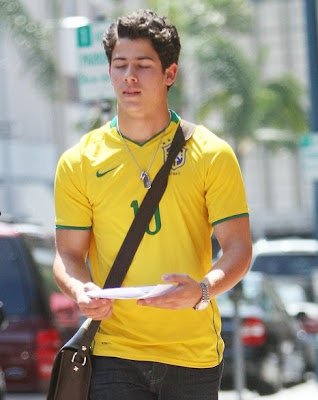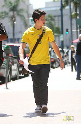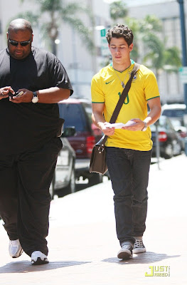 Nick Jonas camina y habla con su amigo y guardaespaldas Big Rob, cuando salen de un edificio médico en Beverly Hills el martes por la tarde (25 de mayo).