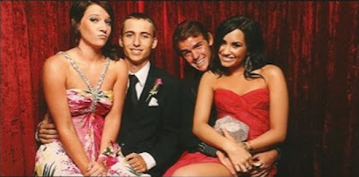 Demi Lovato posa en el regazo de su amigo Nolan Nard en su fiesta de promoción en Texas, a donde Demi acudió para cumplir una promesa que le hizo en el jardin de niños.